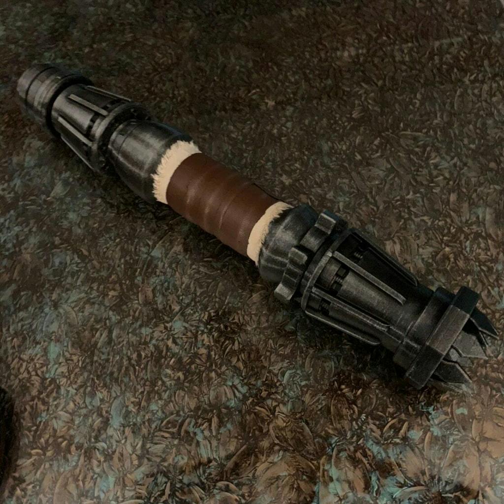 This lightsaber features a mechanical aesthetic inspired by Rey's creation of her own weapon, using parts from her staff. The detailed construction perfectly mirrors the unique style of Rey Skywalker, making it a standout piece for any Rey Star Wars fan.