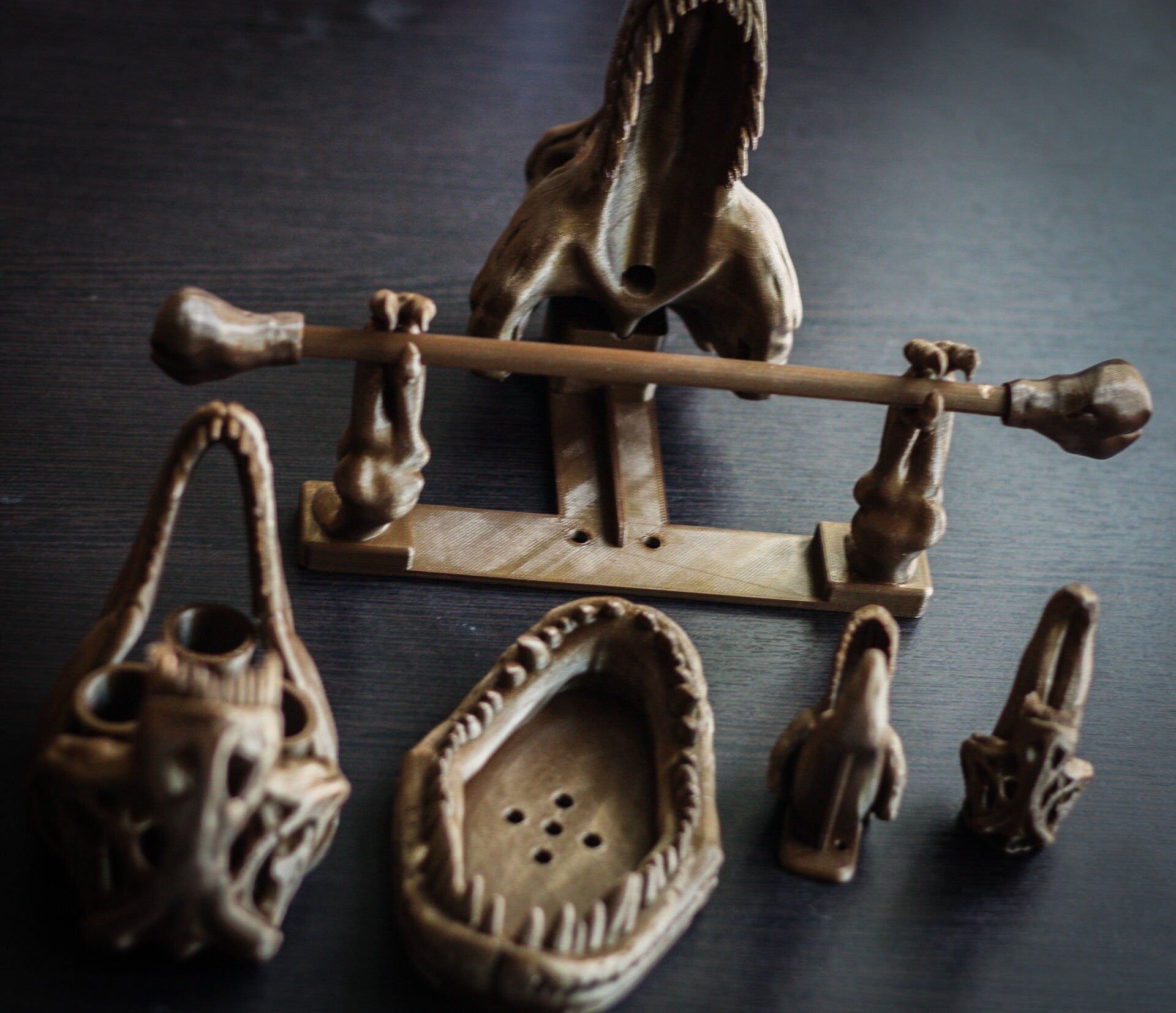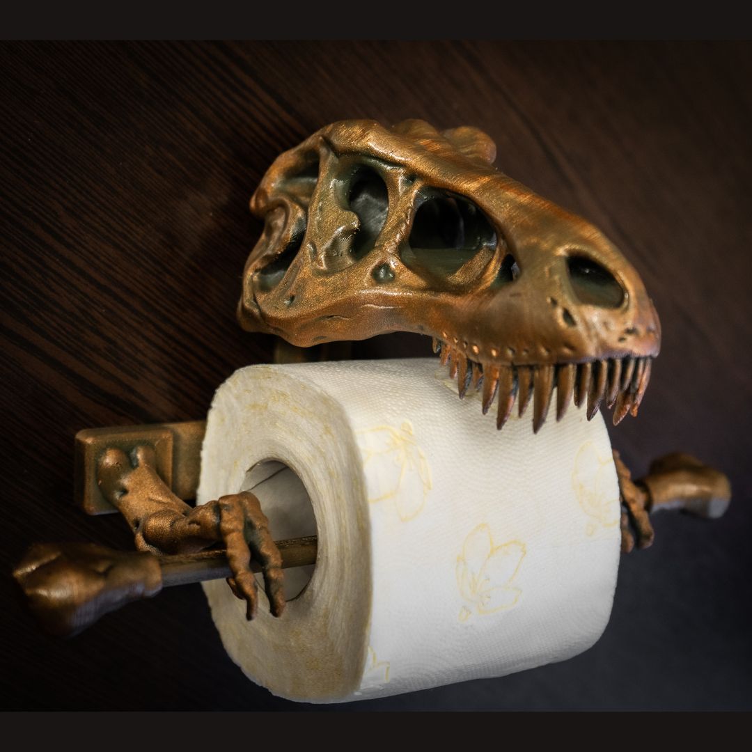 Elevate your bathroom decor with this fun and unique T-Rex Bathroom Accessory Set. Each piece in this set is 3D printed from high-quality PLA or PETG plastic, ensuring durability and a smooth finish. Perfect for dinosaur enthusiasts, this set will bring a touch of prehistoric charm to any bathroom.