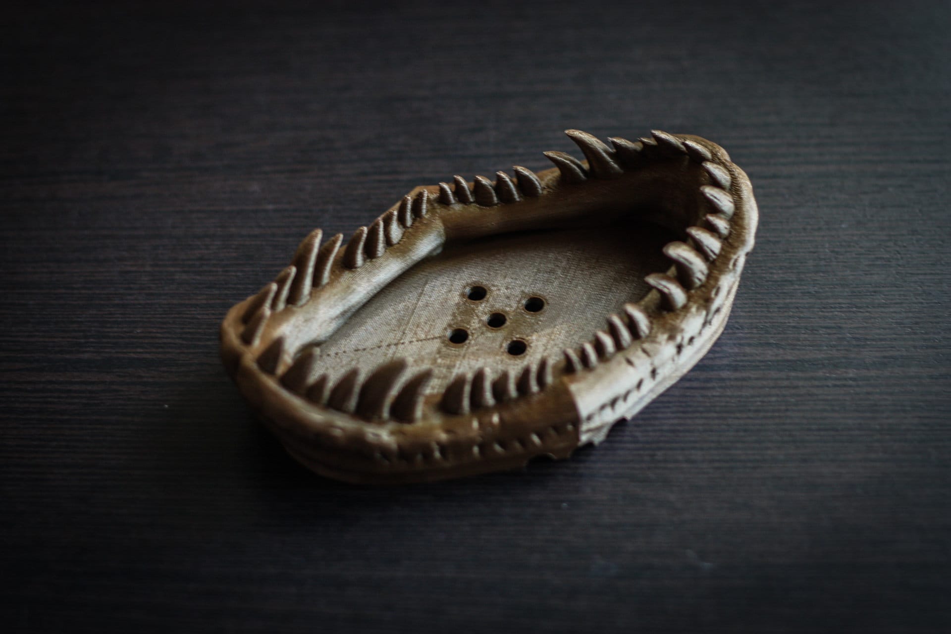 - T-Rex Soap Dish: Shaped like a T-Rex skull, 1.5" tall, 5" long, 3.5" wide.